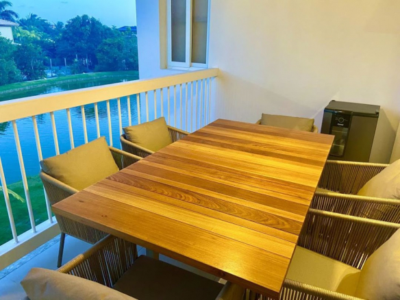 Apartamento de alto standing con vistas al espejo de agua: orientación este y bien ventilado. • 3 dormitorios con confort: incluye 1 amplia suite; todos los dormitorios están bien iluminados y ventilados, proporcionando un ambiente acogedor para su descanso. • Acogedora sala de estar: espacio ideal para relajarse y recibir visitas, con acabados de alta calidad y un ambiente agradable. • Terraza orientada al este con vistas encantadoras: disfrute de una amplia terraza, equipada con una excelente mesa, perfecta para apreciar las vistas y la brisa refrescante. • Cocina americana planificada: moderna y funcional, la cocina está integrada en el salón, creando un ambiente práctico y elegante para preparar sus comidas. • Zona de servicio: espacio dedicado a la organización y al cuidado de la ropa, manteniendo el orden y la practicidad en el día a día. • Mobiliario de calidad: cada pieza se ha seleccionado cuidadosamente para combinar estilo y confort. • Ventilación natural: gracias a su orientación este, el apartamento está constantemente ventilado, proporcionando un clima agradable en todas las estancias. • Excelente ubicación: situado en una zona tranquila y con fácil acceso a servicios y comodidades. • Viva con estilo y confort: este apartamento es la elección perfecta para quienes buscan una vida de calidad, con todo el confort y la belleza que usted merece. Concierte su visita y venga a conocer su nuevo hogar. • Descubra el placer de vivir en un apartamento sofisticado, donde cada detalle se ha pensado para proporcionar confort y bienestar. Situado en una ubicación privilegiada, este inmueble ofrece una vista impresionante al espejo de agua, garantizando momentos de tranquilidad y belleza natural.
